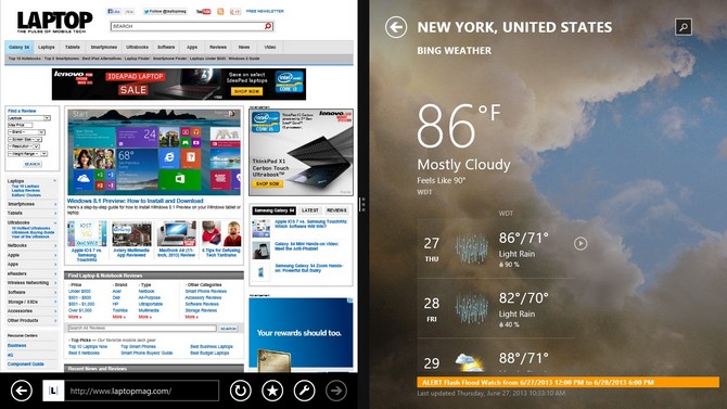 For Windows 8.1, Microsoft has made drastic improvements to the way the OS handles multitasking via Snap View, allowing users to split their screens between apps in ratios of 70/30, 60/40 or 50/50. Plus, the apps will scale properly to fit their new window sizes. If you have a 1080p display, you can even divide your screen between three apps. A 1366 x 768-pixel display will only support two. Here's how to use the new Snap View feature: