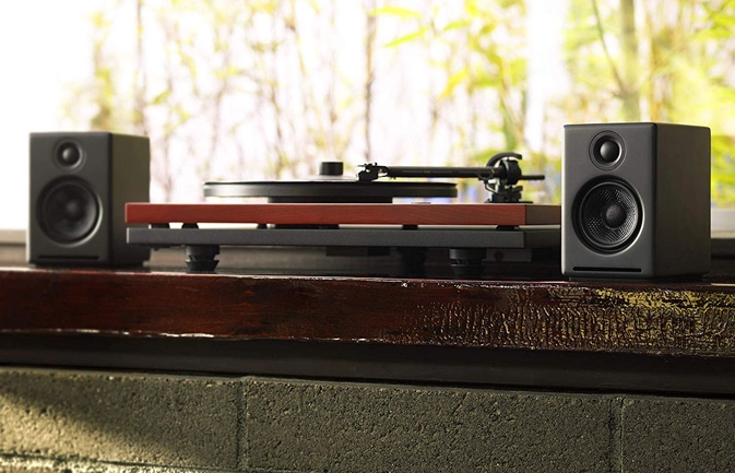 The small-but-mighty A2+ are for those who appreciate detailed audio and can afford to pay for it. You'll hear crisp treble and balanced midrange and bass — no subwoofer needed, though there's a subwoofer output if you want to add one. Best of all, the A2+ fills the room with sound, and they can get really loud. You can connect in a variety of ways, including RCA stereo, 3.5 mm minijack and USB (you can also get a version with Bluetooth for a few bucks more). The solidly built units come in satin black, glossy white or glossy red to match your aesthetics. Unfortunately, the unit lacks a headphone output — its one downside. Size: 6 x 5.25 x 4 inches | Drivers: 2.75-inch woofer, 0.75-inch tweeter | Inputs: RCA, USB, 3.5 mm auxiliary Credit: Audioengine