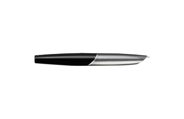 Click to EnlargeAt 6.2 x 0.8 inches and 1.3 ounces, the Sky is the same size as the Echo. The front of the pen is curved and the back is flat in the center, which makes it easy to grip. The glossy body is gray on the bottom half and black on top. The front has a 96 x 18 pixel OLED display, which was the same size on the Echo. The speaker, microphone and power button also are all located on the front as well, while a Livescribe logo sits directly above the power button.