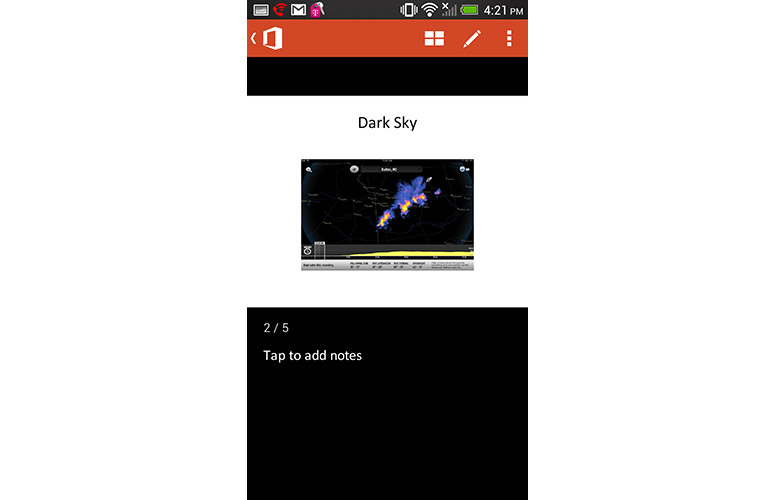 Click to EnlargeTo add notes to a slide, simply tap the black area underneath the slide and a cursor will appear. You can navigate between slides by swiping to the left and right just like in the iOS version, which provides a fluid and natural feel.