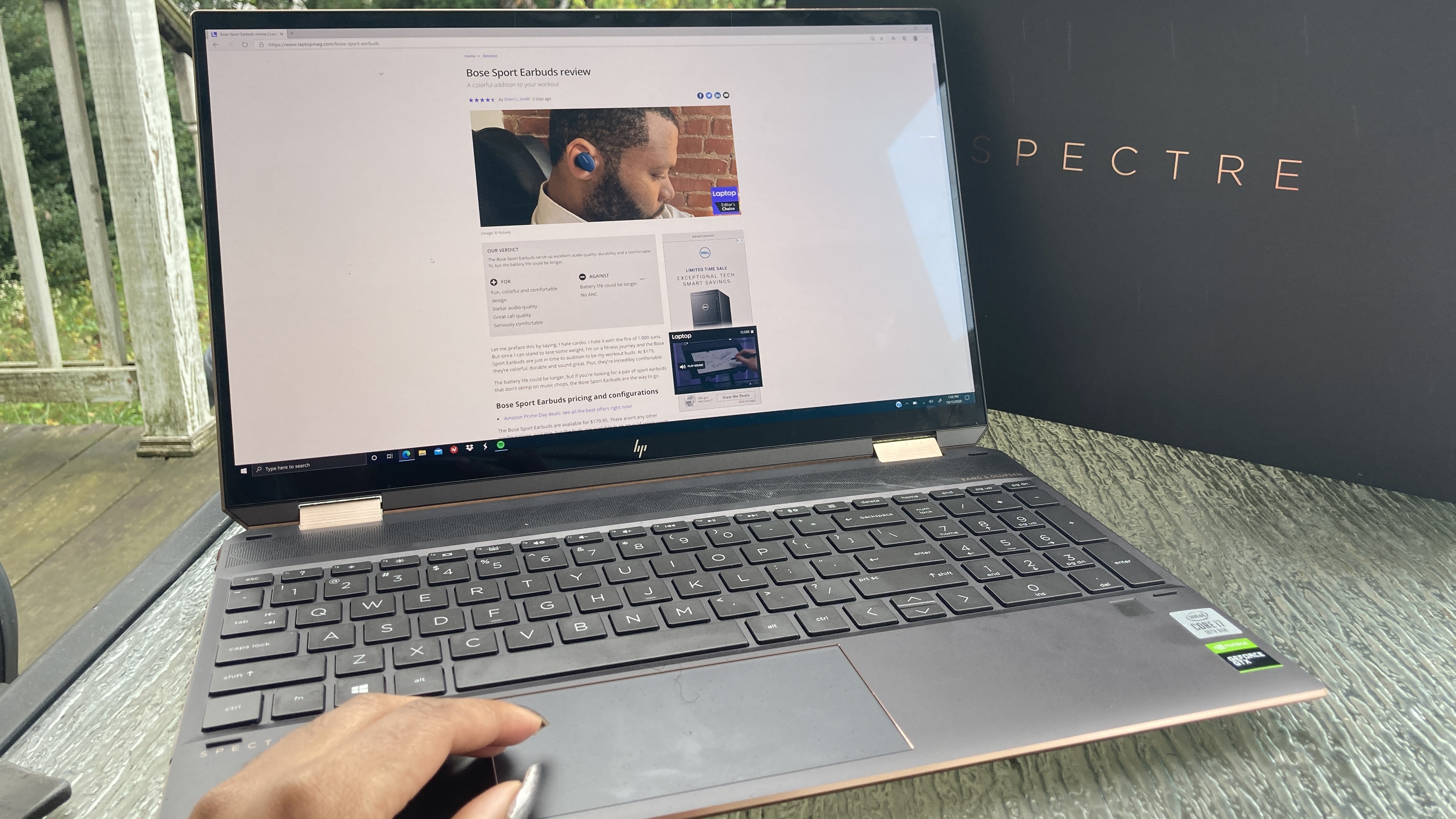 The Spectre x360 15’s display has a super responsive touchscreen panel that kept up with my gestures, such as pinch-to-zoom and left-to-right swipes to return to previous pages.