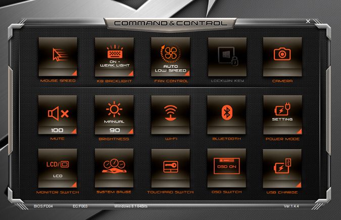 The Power Switch control panel lets gamers choose whether the laptop starts on the regular desktop or the modern layout. You also have the ability to log out, hibernate or switch users. The Control & Command Center offers even more control, allowing you to adjust display brightness, volume, and mouse and fan speed, among other things.