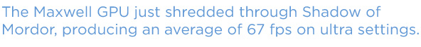 The real test came when I cranked Metro: Last Light to the max. Even the highest-end Kepler GPUs, such as those in the Alienware 17 and Krypton, were only able to eke out unplayable frame rates of 20 and 24 fps, respectively. That all changes with Maxwell. The GT72 managed to hit a just-playable 34 fps, and the G751JY was just a few frames higher, at 37 fps.