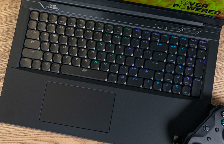 On the other hand, the Overpowered 17+'s mechanical keys don't feel all that much better than a decent membrane model. The 1.8-mm key travel is not so different from the 1.6 mm on the Acer, and the Alienware actually offers a much more comfortable 2.1 mm. (The Asus has only 1.4 mm, so the Overpowered 17+ is better in that regard, at least.)