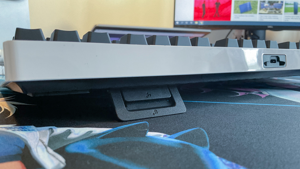 The keyboard’s tenkeyless form factor is made of thick plastic that feels sturdy when typing. It creaks slightly when too much pressure is applied, but never felt like it was going to break. All-in-all, it looks and feels like a quality build, standing strong when placed on a flat surface. Speaking of, its underside has two unfoldable stands that make it easy to adjust the angle of the keyboard — at 4 degrees or 8 degrees — to suit my comfort. Plus, the rubber feet prevent the keyboard from wobbling.