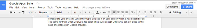 No other suite except Office 365 can get close to the ease of collaboration Google provides. And even Microsoft's product trails by a wide margin as changes only appear in real-time in Word 2016, not the other apps. Depending on whether you are editing Microsoft documents online or in a desktop client, other users may or may not be locked out while you edit.