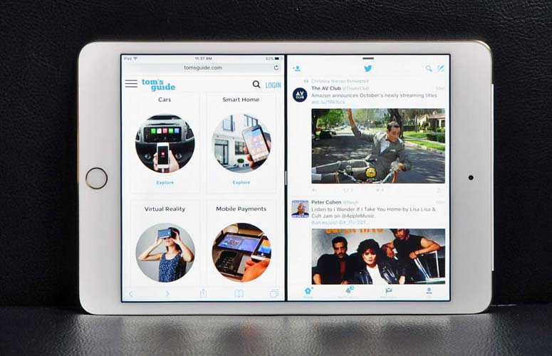 With iOS 9 also comes multitasking, via three features. Slide Over lets you swipe in from the right to open a panel where you can select an app to run in a smaller window that takes up about a third of the screen. That means you could have a Web page open on one screen and Twitter or the News app on another; the larger of the two screens gets grayed out until you're ready to give it your full attention again.
