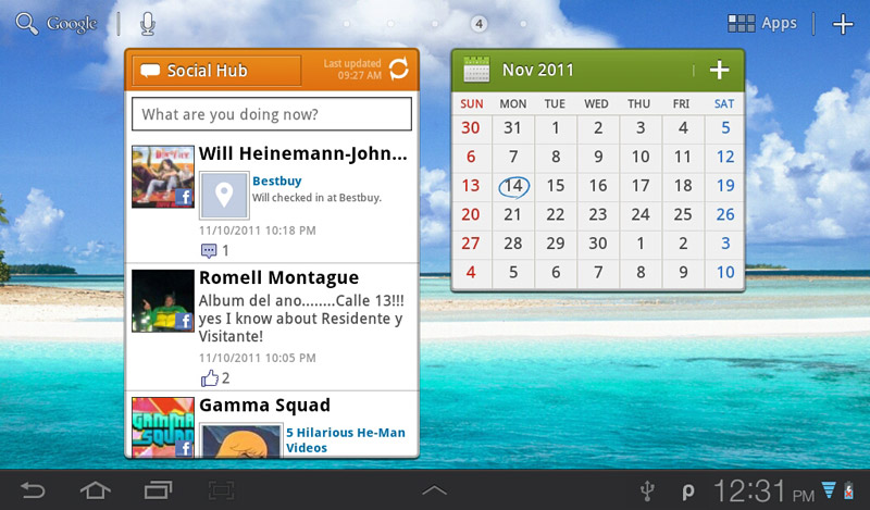 The Galaxy Tab 7.0 Plus borrows heavily from the Galaxy Tab 10.1 for its interface. The 7.0 Plus features Google's Android Honeycomb and Samsung's TouchWiz UX custom interface. The UI gives you five home screens, each of which can be customized with Live Panels, widgets that automatically update in real time. These include Samsung's Social Hub, a widget that provides a steady stream of updates from your Facebook and Twitter accounts.